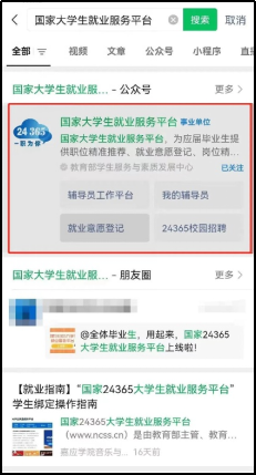1.毕业生搜索并关注“国家大学生就业服务平台”(ncssfwh)公众号
