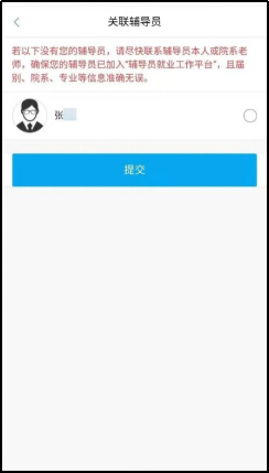 5.在页面中勾选自己的辅导员并提交,则关联成功