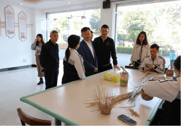 走访人员一行先后参观了莞草编制工作室、手工艺品展览室、中心文化长廊展厅、各部门和学员生活区,了解托养中心运营管理、护理照护、职业教育等特色托养服务模式。参观结束后,双方举行了座谈会。托养中心王老师详细介绍中心的运营规模、管理模式、专业人才队伍建设情况等。东莞残疾人托养中心于2008年成立,服务对象为16-59岁智力、精神多重障碍的残疾人,主要是负责学员的衣食住,进行康复训练及职业教育,辅助就业,制作手工文创产品。王老师还提出了托养中心下一步如何更好发展,如何与高校更好合作的思考与规划。谢正富老师介绍了社管院社工系的发展概况、师资力量、课程设置、近年科研成果等情况,表示期待与托养中心开展合作,促进大学生专业实习和就业。