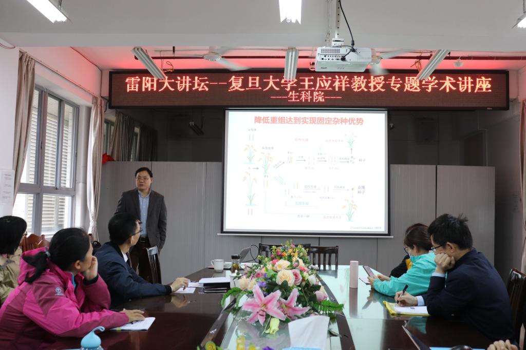 12月11日上午,由生科院主办的“雷阳大讲坛”于燕雷楼D栋505室顺利举行,复旦大学生科院国家自然科学基金杰青获得者王应祥教授作了主题为“减数分裂重组遗传和作物育种的基础”的学术讲座。生科院全体学术骨干和生物技术专业部分学生参加了本次讲座。讲座由生科院副院长(主持工作)刘锴栋主持。