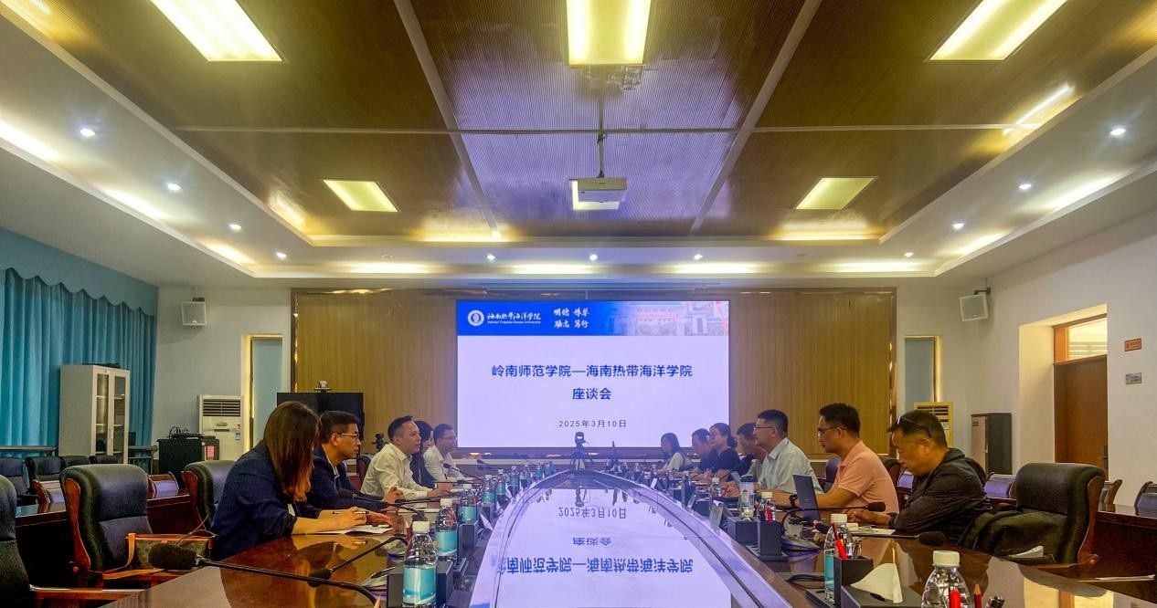 在海南热带海洋学院,党委常委、副校长唐旭对唐宇一行的到访表示热烈欢迎,并详细介绍了该校的办学历史、学科布局和发展战略。唐旭表示,海南热带海洋学院始终坚定不移走高质量内涵式发展道路,为加快建设热带特色鲜明的高水平应用型海洋大学而努力奋斗,期待与岭南师范学院互学互鉴,共同探索新时代高等教育高质量发展路径。唐宇对海南热带海洋学院的热情接待表示感谢,并详细介绍了我校的办学特色、学科优势及发展愿景。他指出,我校近年来聚焦特色学科,积极推动学科优化升级,此次交流旨在学习借鉴海南热带海洋学院在硕士点建设、学科交叉创新、产教融合等方面的先进经验,进一步深化两校合作。随后,双方围绕硕士点申报与建设、重点学科发展、创新型人才培养模式改革、学科交叉融合机制构建、高层次人才引进与团队建设等议题展开深入探讨。会后,唐旭陪同唐宇一行参观了该校校史馆、国家大学科技园、珊瑚馆及水产南繁馆。