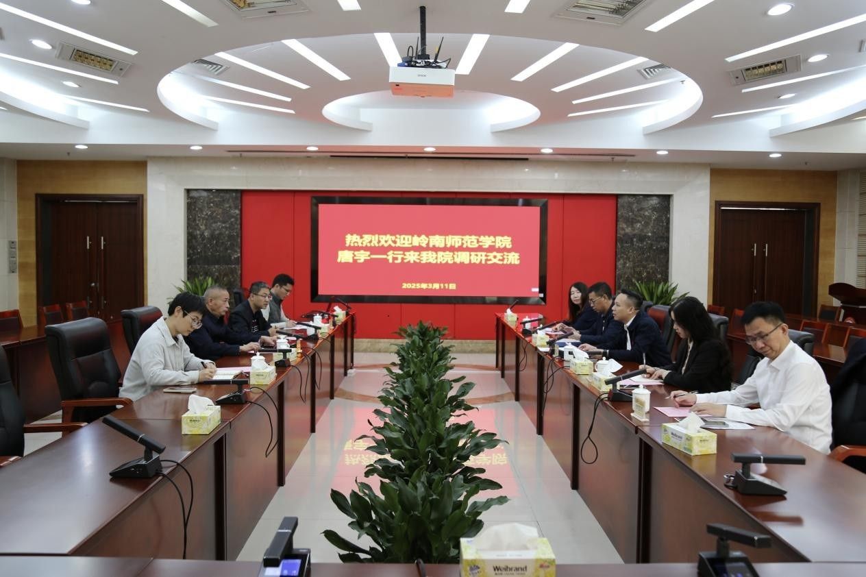 在广东省农业科学院,副院长易干军热情接待了唐宇一行。易干军详细介绍了该院的基本情况,以及近年来在学科建设、产业支撑、院地合作、研究生联合培养等方面的创新做法及显著成效。唐宇介绍了岭南师范学院的基本情况,并表示此次交流是落实学校师范教育120周年大会精神,回访签约单位的重要举措。他希望双方能在科技创新、成果转化、研究生联合培养等方面开展深入合作,实现互利共赢。会前,易干军陪同唐宇一行参观了该院科技成果展厅。