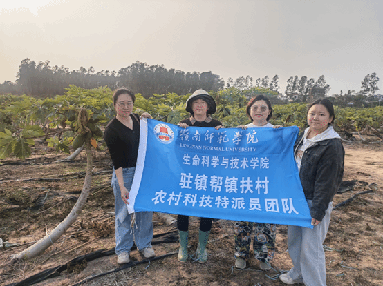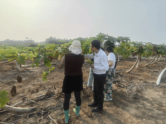 近日,生科院农村科技特派员负责人刘锴栋教授带领团队成员朱胜男、杨翕然、丁美玲、李晓菲老师赴湛江市坡头区,与当地驻镇工作队紧密对接,共同为典型村的绿美规划出谋划策,并为木瓜种植户送去春季雨雾天气果园管理的实用技术,为乡村发展注入科技力量。