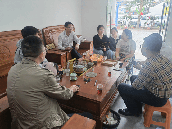 在乾塘镇乾塘村,特派员团队首先与乾塘镇镇委副书记邓量、驻镇帮镇扶村工作队队长欧雅冠以及乾塘村村干部进行了深入交流,详细了解乾塘村乡村绿化、产业发展等方面的需求情况。针对乡村绿美生态建设的新要求,双方达成合作共识,并就典型村的绿美规划进行了细致探讨。