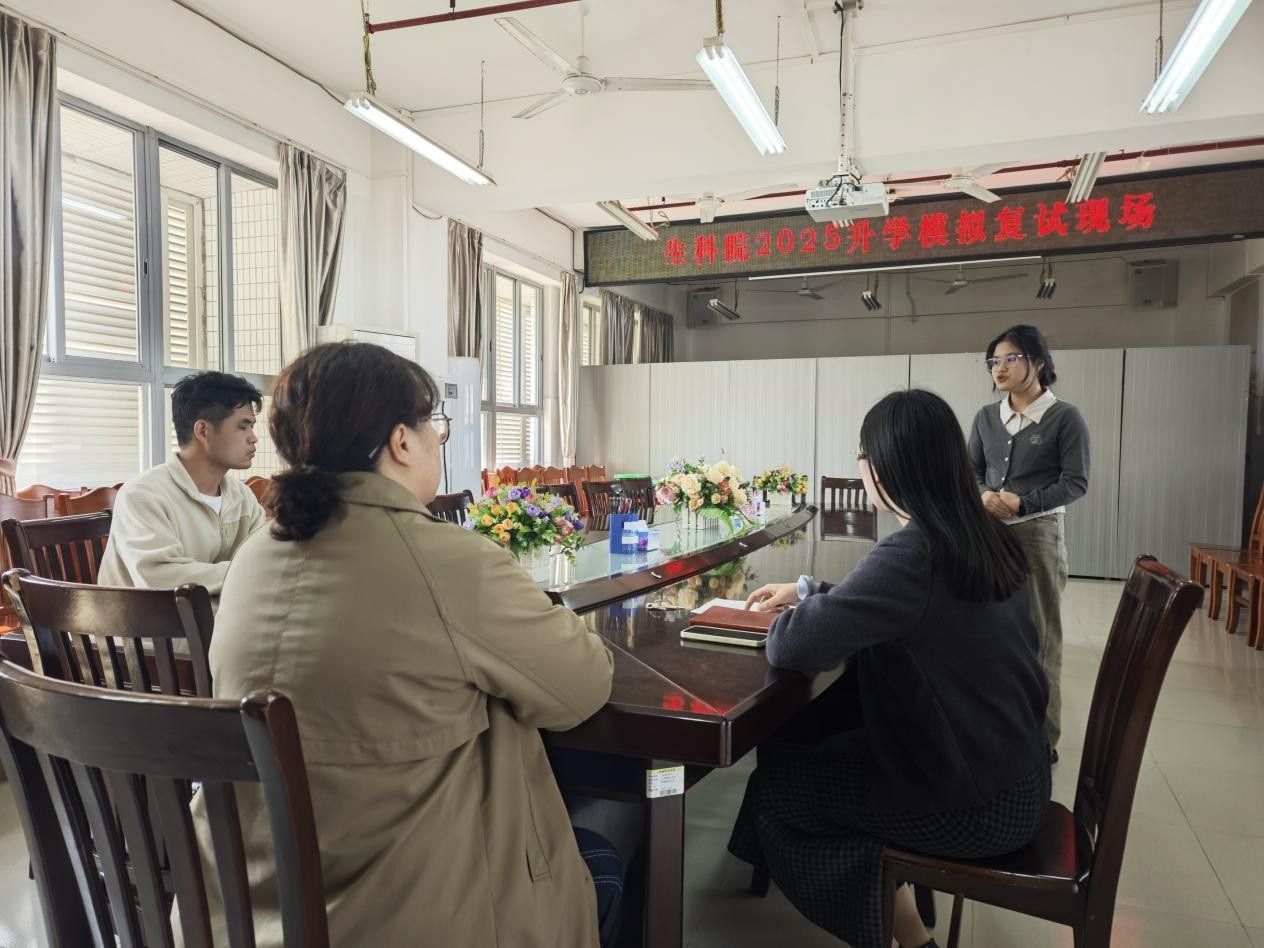 为帮助2025届考研学子做好复试准备,提升学生考研复试竞争力,3月18日下午,生科院在燕雷楼D505举办2025年升学深造模拟复试会议。聚焦中英文自我介绍、英语翻译与专业问题应答三大核心环节,通过全真模拟与精准反馈,为学生打造了一场“沉浸式复试特训营”。生科院院长刘锴栋、党委副书记覃静君和毕业班班主任、21级辅导员及教师代表出席了本次会议,为即将参加复试的学生提供专业指导。