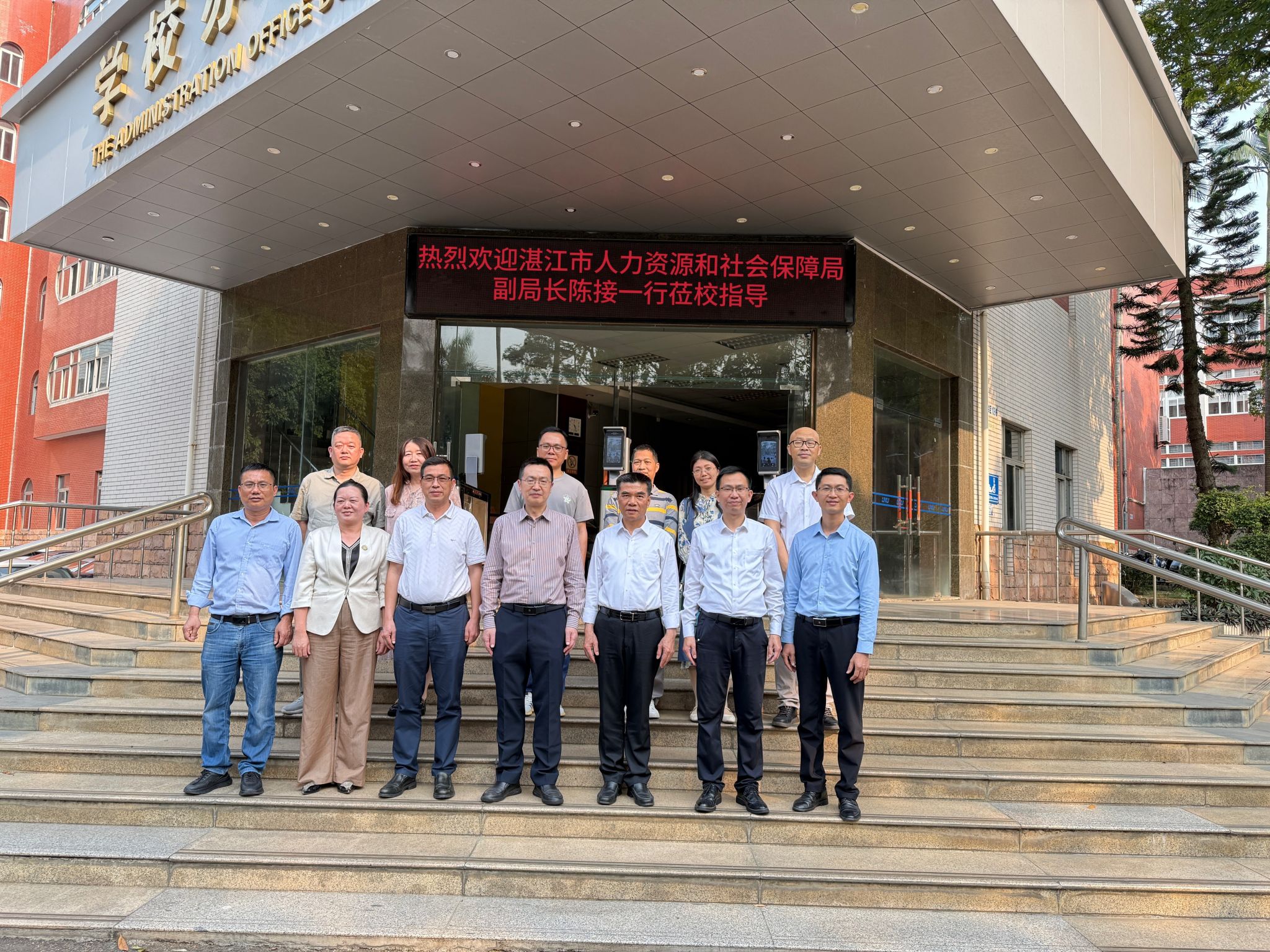 3月27日,湛江市人力资源和社会保障局党组副书记、副局长、二级调研员陈接一行莅校调研交流。岭南师范学院副校长金义富出席交流会。