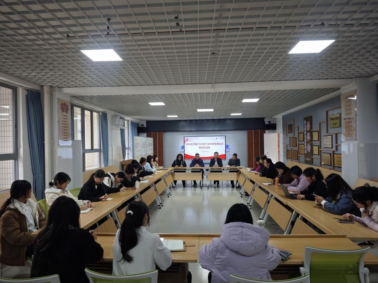 为进一步加强新发展党员对党的理论知识学习和理解,明确党的纪律要求,强化党员身份意识和责任意识,生科院党委于2025年3月18日在燕雷楼E507召开2024年下半年新发展党员集中谈话会。生科院党委书记李发武、院长刘锴栋、党委副书记覃静君、各师生党支部书记、教工支部支委出席谈话会,2024年下半年新发展党员参加。