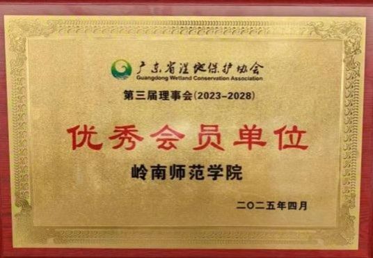 2025年4月12日,广东省湿地保护协会第三届第二次会员代表大会暨第三届第五次理事会在珠海横琴召开。会议总结了2024年度湿地保护工作成效,部署了未来发展规划,并对优秀会员单位及个人进行表彰。岭南师范学院作为协会副会长单位(2023-2028)获评“2025年度优秀会员单位”,张颖教授代表学校上台领奖。