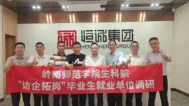 为进一步加强校地合作,服务地方经济社会发展,拓展毕业生就业渠道,近日,学校党委常委、副校长唐宇带领生科院党委书记李发武及其他单位相关负责人赴广东恒诚制药股份有限公司开展访企拓岗活动。