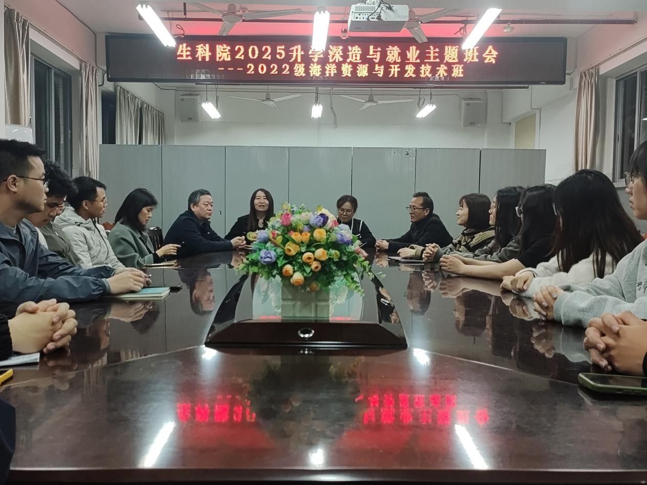 为帮助2022级学生更好地规划未来发展,生科院海洋资源开发技术系于近日组织召开了“升学与就业”主题班会。学院党委副书记覃静君、副院长王锂韫、海洋资源开发技术系主任杨长庚、班主任谢瑞红及专业全体教师出席会议,并为学生提供指导和建议。