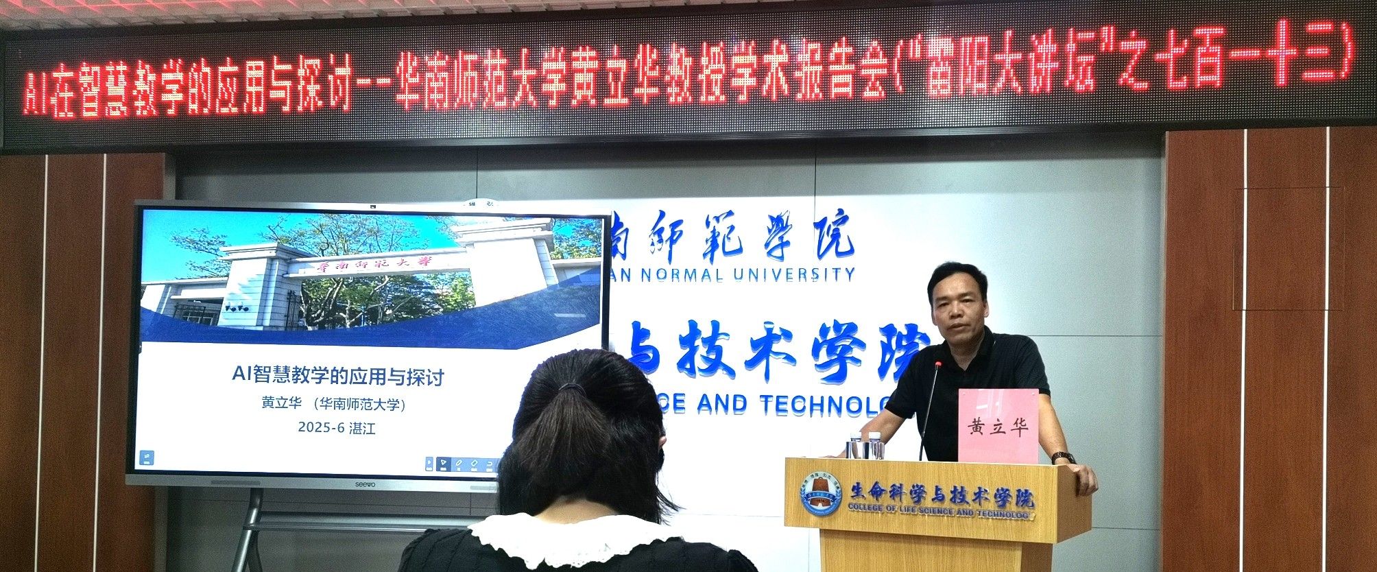 为紧跟人工智能在教育的发展趋势,切实提升生科院教师的智慧教学能力,6月13日,生科院于教4-E507多功能教室举办了“雷阳大讲坛”之华南师范大学黄立华教授学术报告会(雷阳大讲坛之七百一十三)。本次讲座主题为“AI智慧教学的应用与探讨”,由我院孙余丹副院长主持,吸引了50余位教师踊跃参与。