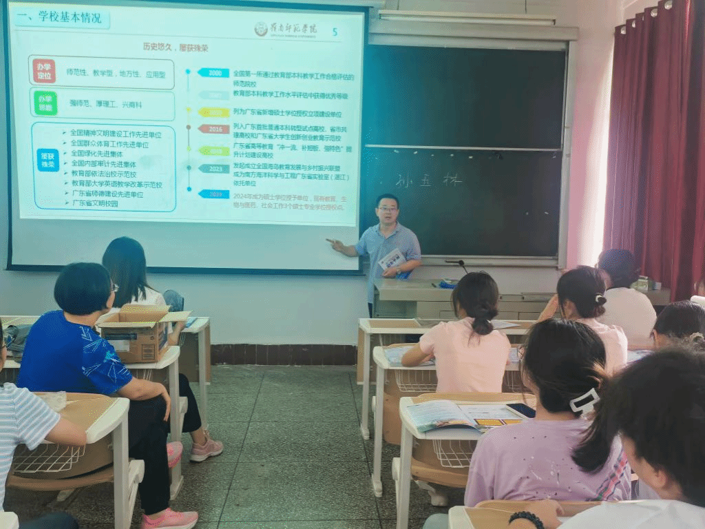 孙玉林副教授详细介绍了我院的师资力量、科研平台、环境优势及研究生培养特色,重点解读了学校的研究生招生政策、奖助体系及就业前景,并欢迎湖北学子报考岭南师范学院生命科学与技术学院,共同探索生物医药领域的学术前沿。其中,他还分享了学生在各类竞赛中的优异成绩,包括全国大学生生命科学竞赛一等奖、广东省“挑战杯”创业大赛金奖等,展示了学院在创新人才培养方面的显著成效。
