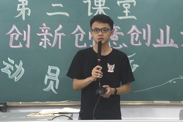 去年在“三创大赛”中荣获二等奖的优秀选手黄冠鹏与同学们分享了自己的参赛经验。他建议同学们组建团队后,要及时寻找指导老师并与之多加交流以更好地完善作品。同时,他提醒同学们要格外注意作品的格式要求。