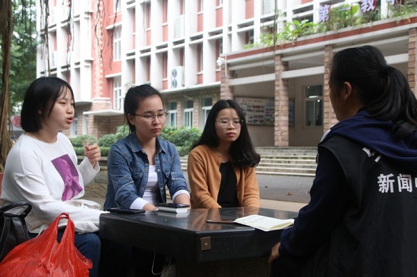 11月29日,记者邀请到在“岭师杯”辩论赛两场辩论都抽到有关高山榕辩题的来自15生本2班的辩论队的许丹丹、吴春媚和黄嘉嘉三位同学作了相关交流。