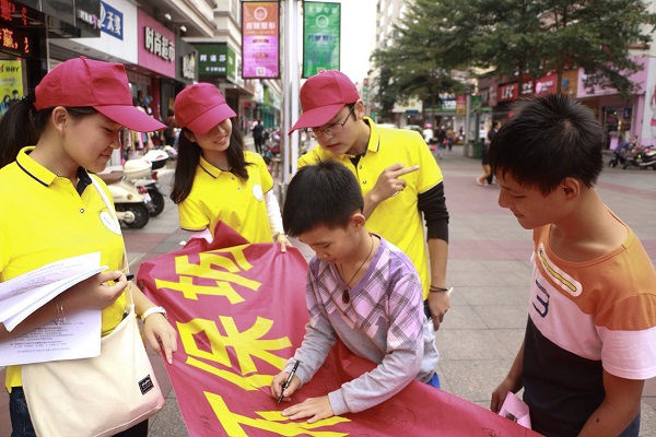 宣传活动中,志愿者在步行街中积极并有意识地向不同年龄段的市民派发宣传单。值得一提的是,有的市民会向志愿者主动询问护鸥活动详细内容。甚者,有位小市民还主动填写调查问卷并跟随志愿者到横幅处留下自己的签名。通过志愿者们的宣传,许多市民从不了解红嘴鸥的存在转变到认识红嘴鸥的重要性,这大大增大了红嘴鸥的宣传保护力度。