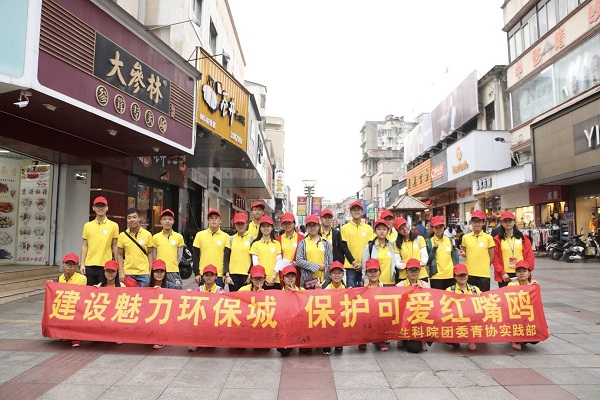 【生科院新闻中心11月19日讯】红嘴鸥,从遥远的西比利亚飞到湛江栖息、避寒、过冬,是我们湛江的“荣誉市民”。为了让更多的市民了解红嘴鸥,保护红嘴鸥,11月19日下午,我院17生本3班于湛江市赤坎区步行街开展以“保护红嘴鸥,让它们飞得更高”为主题的志愿倡议活动。