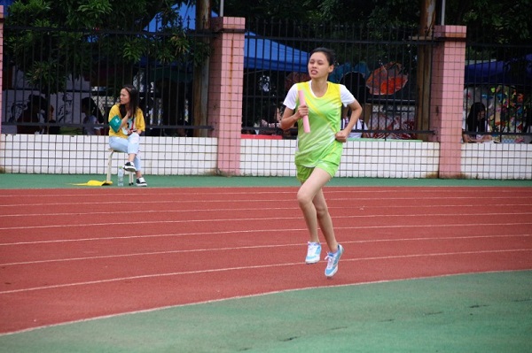 “预备!”响起,跑道周遭布满紧张的气氛。随着一声发令枪响,跑道上的运动员像离弦的箭一样跑出去,田径场又沸腾了起来。现在将目光聚焦在第四赛道上,天呐,生科院选手渐渐被拉开了距离,落在了后面。观众席上的生科学子更加大声地喊着“生科院,加油!”,最终,选手在最后一棒中前进了一名。