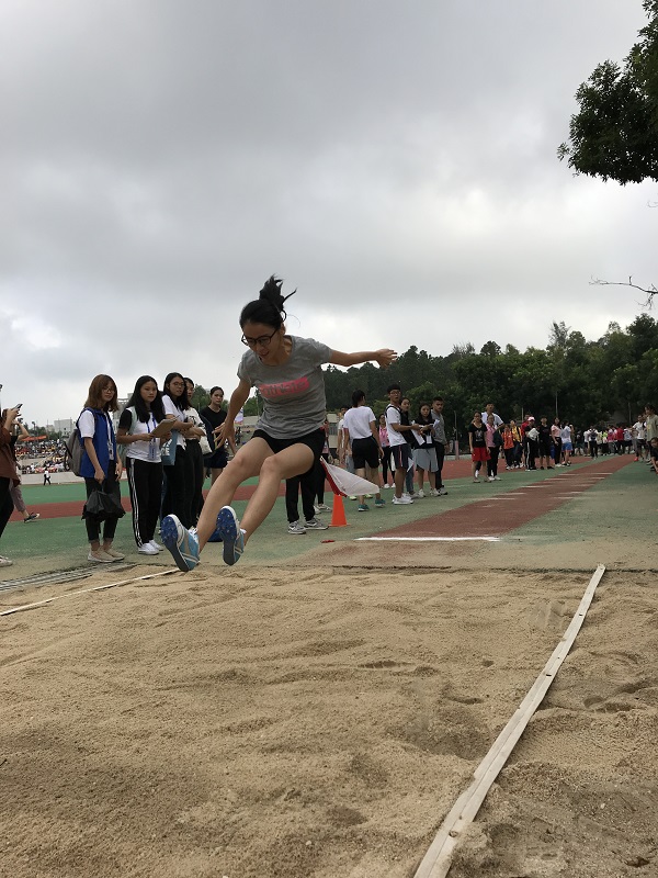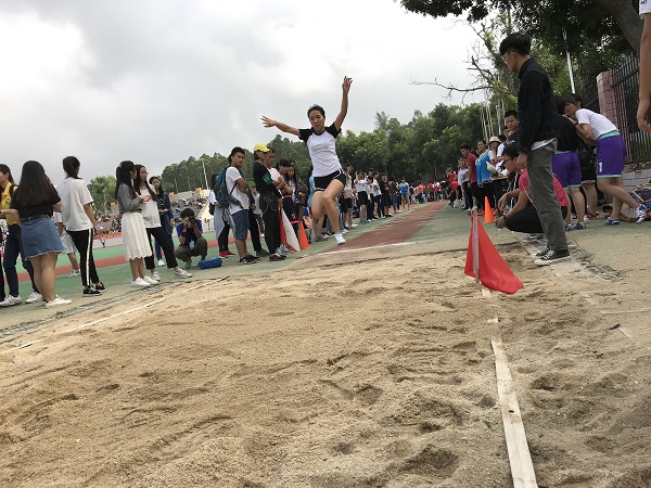 赛前,运动健儿们精神抖擞地跑上两圈、抱腹跳,认真完成每一项热身运动。为了能在比赛中取得好成绩,她们认真备战,不畏艰辛,努力拼搏。随着裁判的红旗挥下,她们奋力助跑、踏条、腾空、落地,划出一条美丽的弧线,轻捷的身影从眼前掠过,踏在沙坑,走向胜利!