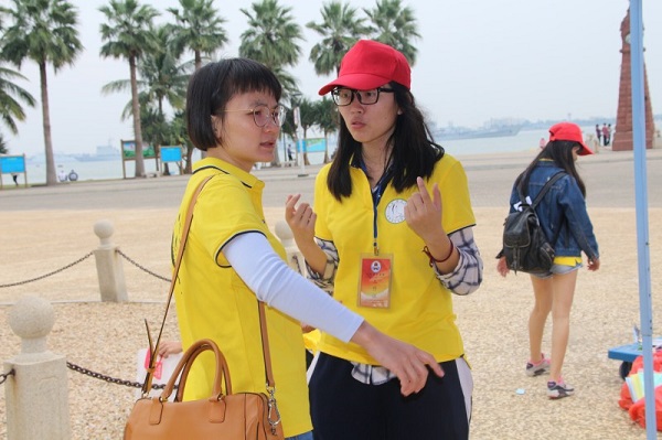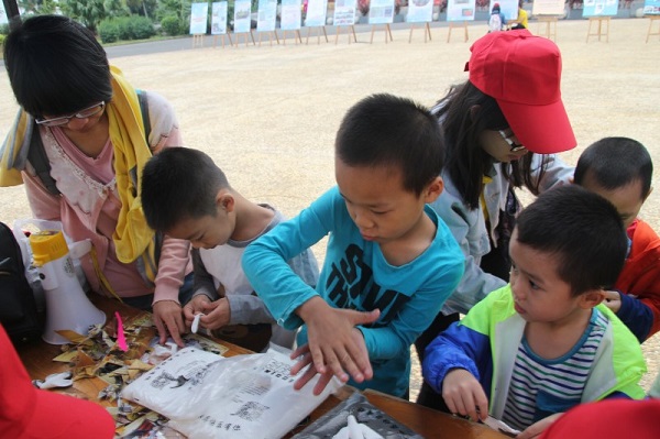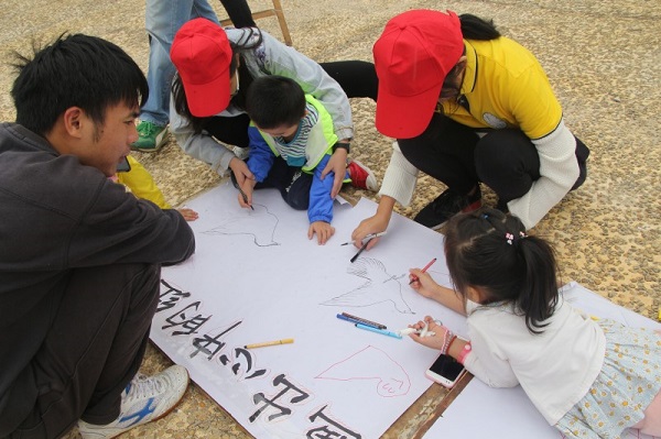 本次宣传活动分为定点宣传和走动宣传两大模块。在定点宣传中,红嘴鸥志愿服务队通过大型海报和照片展示护鸥历程、指导游客制作红嘴鸥工艺品、红嘴鸥知识有奖问答、沙滩绘画等活动向市民宣传保护红嘴鸥的知识。其中,在最受欢迎的“捏制红嘴鸥”游戏中,小朋友们捏制出了一个个可爱、生动的红嘴鸥。游戏期间,一位家长说:“你看,姐姐们都在做公益活动,你要向姐姐们学习,知道吗?”小朋友在家长的鼓励下,于快乐中加深了对红嘴鸥的认识。