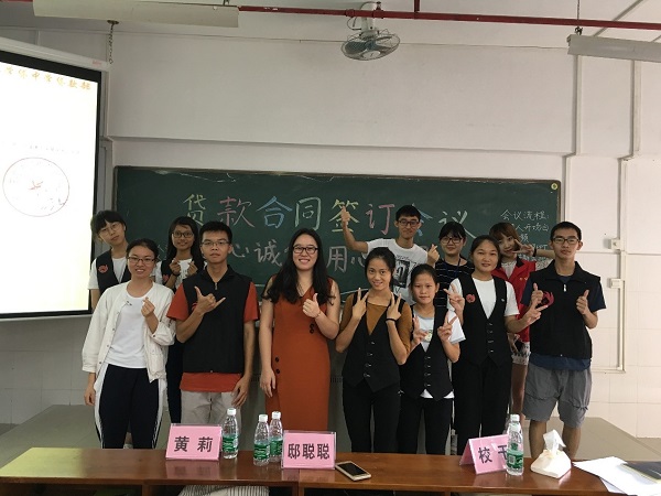 最后,全体贷款生进行庄严宣誓,在老师和干部的帮助下,顺利地签订了《贷款合同》。