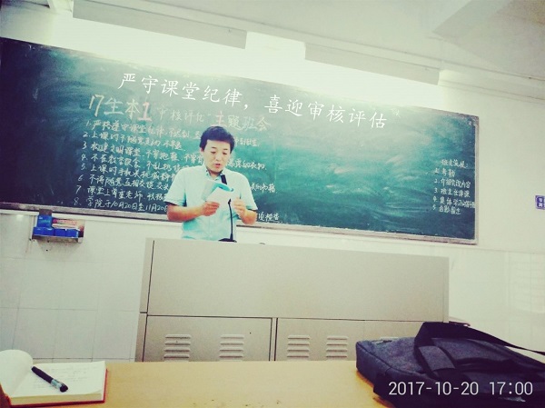 【生科院新闻中心10月20日讯】为了让同学们营造文明有序的上课氛围,以良好的精神面貌迎接审核评估。10月20日下午16:10,17生本1班举办了关于“生科院课堂纪律”以及“本科教学工作审核评估”的相关主题班会。本次班会有班主任周璨林老师主持。