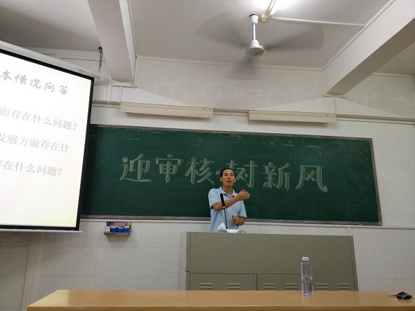 紧接着,孙鹏老师首先指出了班级平时存在的一些不足之处,强调了本次审核评估对我校发展的重要性,他希望同学们能够改正不足,以良好的精神风貌,团结一致地做好评估工作。