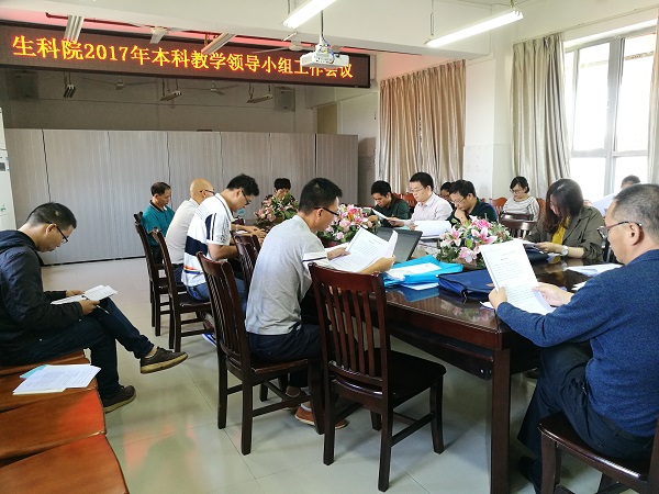 【生科院新闻中心10月19日讯】为进一步做好学院教学改进工作,以良好面貌迎接审核评估,10月19日上午10点,生科院2017年本科教学领导小组工作会议在第四教学楼D505召开,出席本次会议的有生科院党委袁长春书记、陈道海院长、党委郑侯锦副书记、刘锴栋副院长、王锂韫副院长以及其余领导小组全体成员。会议由刘锴栋主持。