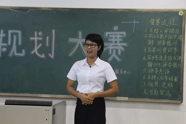 主持人讲解比赛规则后,在初赛中脱颖而出的8名选手依次上台进行演讲。选手们利用PPT分别从自我认知、职业认知、职业规划设计、评估反馈调整四大方面展示自己的职业规划蓝图。而在面对评委的犀利提问时,选手们沉着冷静,从容应对。此期间的励志歌曲表演《追梦赤子心》舒缓了紧张的比赛氛围,有奖问答游戏更把大赛气氛推向了欢乐的高潮。