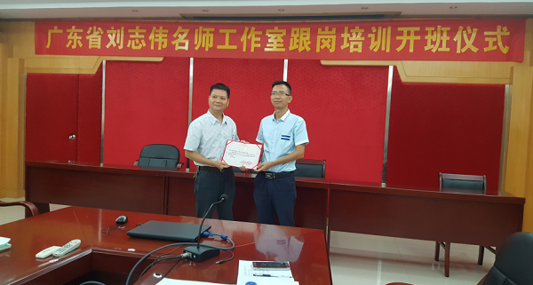 在佛山市九江镇初级中学(曾秩和纪念初级中学),来自全省各地的11位初中生物骨干教师同全校师生共同参加升旗仪式后,在“刘志伟名师工作室”进行了跟岗学习开班仪式,刘志伟老师是中学正高级教师、国家特级教师、教育部国培专家、全国五一劳动奖章获得者,也是本次高端研修班的授课专家之一。刘志伟老师从学校的定位,结合中考的政策和地方特色,阐述了工作室创立的背景和发展历程。他明确指出,近五年是教师专业专业化发展的最好的时机,他鼓励大家争取早日成为百千万计划的一员。九江镇初级中学的陈校长及陈主任参加了开班仪式,对学员们的到来表示热烈的欢迎。随后,刘锴栋副院长还为刘志伟老师颁发了聘书。