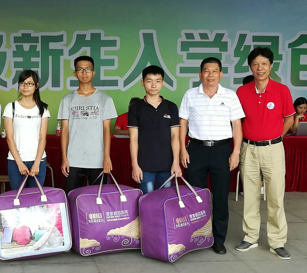 现场办理绿色通道的新生接踵而来,领导老师和学生干部亲切指导新生出示相关证明和填好申请表。生科院今年申请绿色通道的人数共25人,部分贫困生可以通过公众号申请并经过条件筛选后领取“爱心礼包”。此次贫困生经济资助项目,除了爱心大礼包,还发送了生活补助金、“雨露工程”早餐补贴等资助。当日下午,校财务处处长吴华明和我院党委副书记郑侯锦给生科院14名家庭经济困难的新生发放了生活“爱心礼包”。