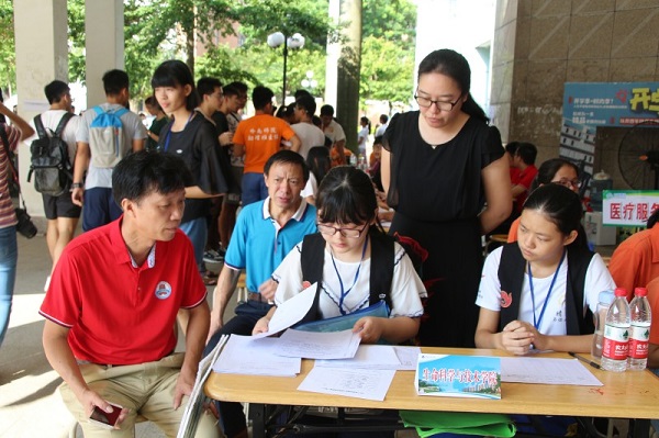 【生科院新闻网9月12日讯】以“不让一位大学生因为家庭经济困难而上不起大学”为目标,9月9日,我校在体育馆一楼开设“绿色通道”,接受家庭经济困难新生缓交学费申请,确保困难新生顺利入学。生科院领导班子在绿色通道办理点轮班,慰问贫困学子,时刻关注绿色通道的情况。