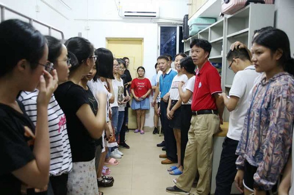“你们来自哪个城市?”“适应湛江的天气吗?”“生活用品都买好了吗?”在走访过程中,袁长春书记与新生亲切交谈,了解他们的具体情况。期间,袁书记嘱咐新生在陌生城市出门游玩要结伴而行,要特别注意人身安全和财物安全。同时,他再三提醒新生遇到不懂的问题时可以询问辅导员或助班,要学会防盗防骗,不要相信来历不明的收费等诈骗行为,要让自己尽快适应大学生活。
