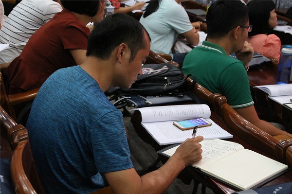 讲座的最后是学员提问环节,苏永善教研员用自己和学生共同成长的经历作为案例一一回答了学员的提问。同时,他还对学员的提问要点进行了深刻剖析。此次讲座在热烈的掌声中圆满结束,学员们表示此次讲座语言幽默、内容丰富而实用,他们受益匪浅,对如何成为一名创客型教师有了更深入的了解。