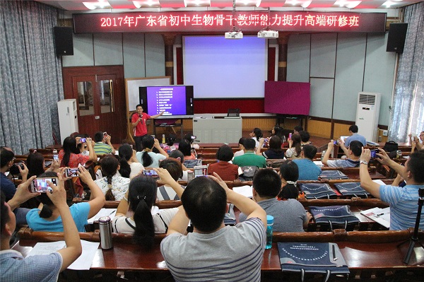 【生科院新闻网9月2日讯】8月31日下午三点,佛山市禅城区教育局苏永善教研员受岭南师范学院生命科学与技术学院的邀请在榕楼一楼培训室进行“教师成长教育之二:一位湛师校友成功的足迹——如何当一名创客型教师(青少年科技创新指导)”专题讲座。2017年初中生物骨干教师能力提升高端研修班全体学员参加了本次讲座。
