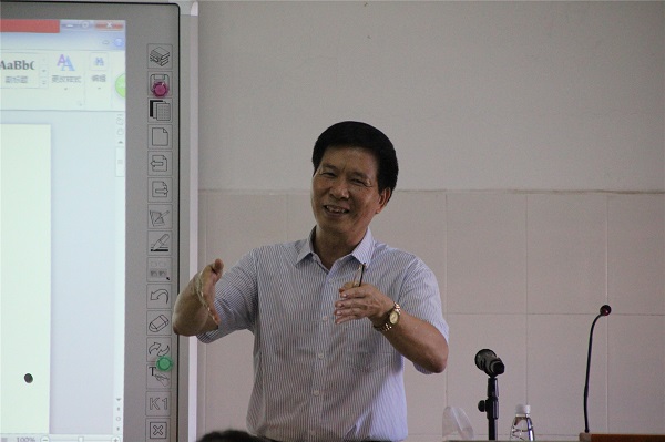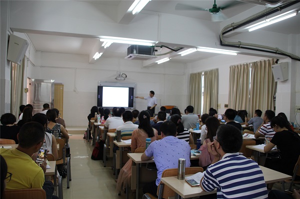 讲座伊始,李娘辉教授详细讲解了四项学术“小广告”,分别是关于举行全省中学生物教师概念教学竞赛的通知、关于举办“2017广东省中学生物教师生物课堂实验教学案例竞赛”活动的通知、关于2017年论文评比和出版论文集的通知和研究课题申报书。然后,他为学员们带来了精彩的“初中生物水分矿质光合作用呼吸作用教学难点突破和教学内容拓展”和“中学生物教师教育科学研究方法”两大专题讲座。