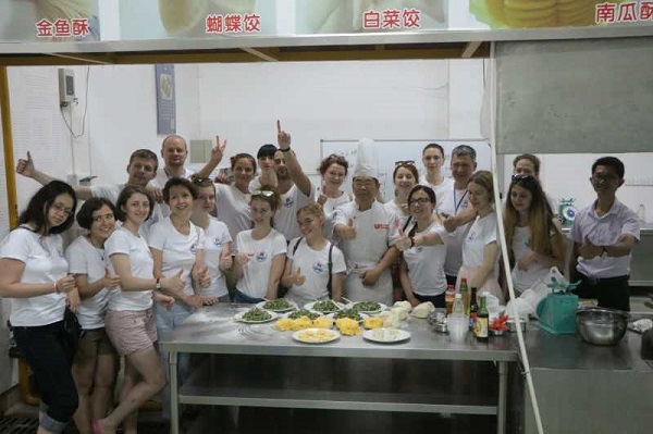 【生科院新闻中心6月9日讯】为了促进中国和白俄罗斯两国之间的文化交流,增进白俄罗斯大学生对中国烹饪文化的了解,6月9日上午十点整,由生科院筹备的白俄罗斯国立体育大学孔子课堂夏令营之中国烹饪课程于烹饪实训中心正式开课。庞泽翀老师担任本次中国烹饪课程的主讲老师,庞老师选择中国传统面食之一的猪肉韭菜饺子和酥甜软糯的南瓜饼作为本次烹饪课程的主要教学内容。