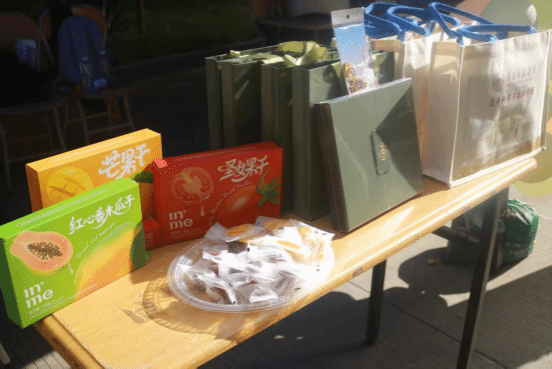 现场还有纪念礼盒、自产果干套装、为启程加油