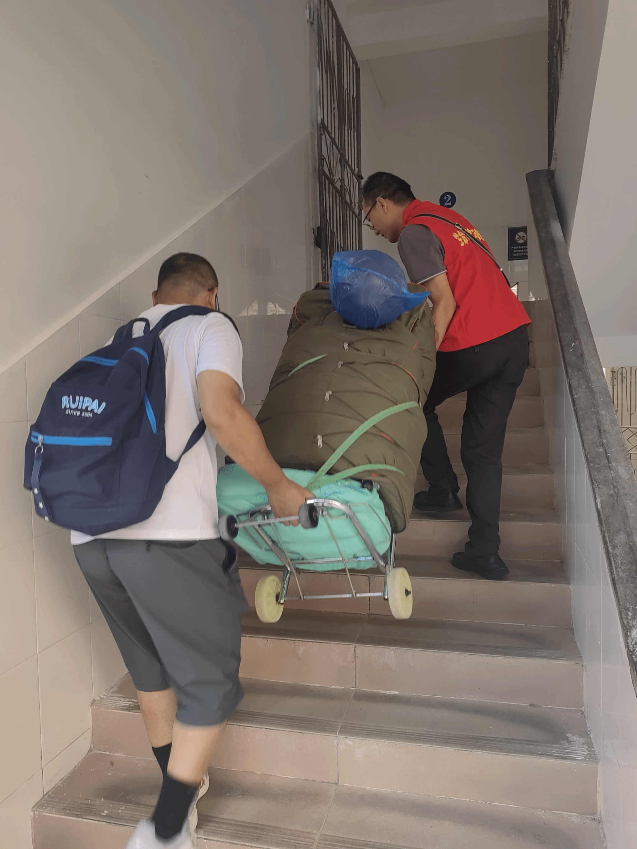 “看到老师亲自帮我搬行李,汗流浃背还一直笑着,真的特别感动!”一名来自福建的新生说到。不止是指引,党员教师们更是主动化身“搬运工”,来回穿梭于报到处与宿舍楼之间,手提肩扛,毫无怨言。