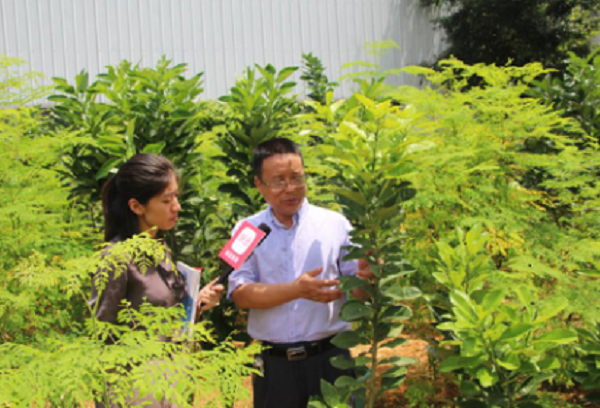 在湛江十多年,刘金祥教授孜孜不倦地去研究和追寻与本地气候发展相适宜的珍贵植物。“植物伟哥”也就是家喻户晓的黄秋葵研究在2015年取得了相当大的科技成果,目前在湛江大地也已被普遍利用,刘教授强调黄秋葵抗台风能力很强,非常适合在湛江种植。而全身都是宝的辣木因其籽有特殊成分,可做成面条面包原料、佐菜配料。被称为“生命之树”的辣木还曾在2014年被习近平主席作为访问古巴的国际礼物。此外,还有止咳治病的宝贝——橘红,刘教授向小编解释橘红共有三种,他的团队研究是最好的正毛品种,橘红一般种植三年后开始结果,一小片果儿价值就如一小片黄金。而如今刘教授主要深入研究的草本植物是香根草。对此,刘教授本人有许多相关的研究论文与著作,香根草研究也在今年获得了湛江市科技技术进步奖。