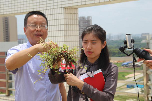 刘教授拿起神奇的锦竹草