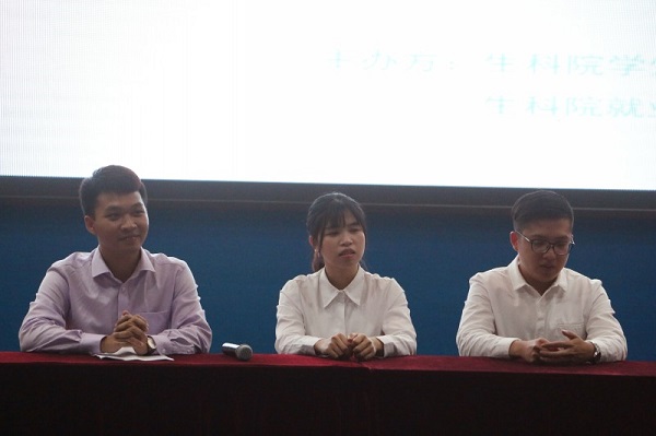 随后,陈永国副处长、袁长春书记等领导为考研先进个体颁发荣誉证书。为充分发挥榜样模范作用,特邀请三名考研代表作经验分享。黄业辉同学认为,在考研的过程中要树立信心、明确目标并作好充分准备;关洁同学对公共课和专业课的复习给出相关建议,并指出“重在行动,贵在坚持”;邹晓君认为,心态的调整、沟通的技巧、语言的礼貌和对生活的感恩至关重要。在随后的交流互动环节,他们对师弟师妹提出的问题给予耐心解答,让同学们获益匪浅。