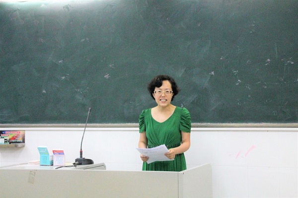 紧接着,陈蓉老师对本次大赛进行点评。陈老师首先从教学仪态、教学环节和教学目标三个方面肯定了各参赛选手的表现,她认为大部分选手都有自然大方的教态和出色的教学组织能力,并且能在教学过程中体现教学的三维目标。而后,陈老师就各位选手的不足提出了几点建议:第一,关爱学生,热爱讲台,才会有内源性教师风范和教学热情。第二,语言表达注重准确、流畅和抑扬顿挫,语速适宜,同时要学会把握课堂节奏。第三,比赛授课选题内容宜少而精,教学设计应体现学生的主体性,要善于引导学生去思考和探究,板书设计要层次分明、美观。第四,教学实施过程中,要注重组织教学和与学生的交流,学会用问题串去启发学生的思维,并有效地发挥PPT的教学辅助作用。
