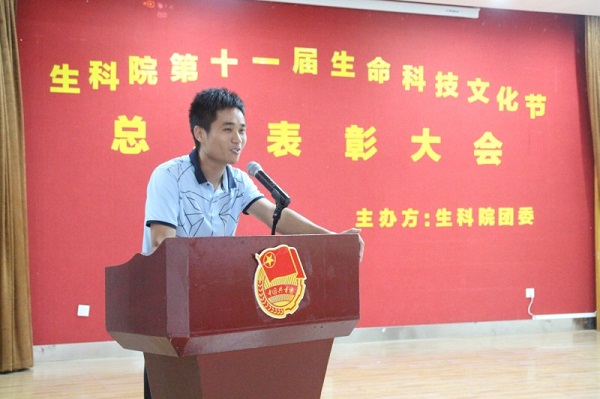 郑侯锦副书记在会上宣读本次生命科技文化节的表彰决定。他希望生科院全体师生能够再接再厉,发扬成绩,在未来的工作与学习中推动创新创意演绎生命科技文化,再创佳绩。