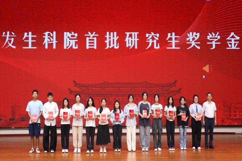 在颁奖环节中,李发武书记和刘锴栋院长分别为2025年新任班主任和助理班主任颁发了聘书。一纸聘书,承载的是责任与信任,更是对新生大学生活的全程陪伴与引领。随后,学院为首批研究生奖学金获得者以及在多项高级别学科竞赛中获奖的优秀学子颁发了荣誉证书。从广东省师范生技能大赛到全国大学生生命科学竞赛,从“挑战杯”省赛特等奖到中国国际大学生创新大赛,一批批生科学子以卓越表现,彰显了学院育人实践的丰硕成果。