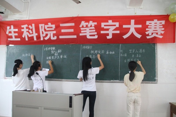 【生科院新闻中心5月14日讯】为提高当代大学生的文化素质,弘扬中华传统文化的魅力,加强同学们对书法艺术的重视。生科院第十一届三笔字大赛于5月13日8:30在燕雷楼c栋312、313、311教室隆重举行。出席本次比赛的嘉宾有来自美术学院的评委老师张治平、新闻中心指导老师邸聪聪、校宣传部干部以及各二级学院的干部代表等。