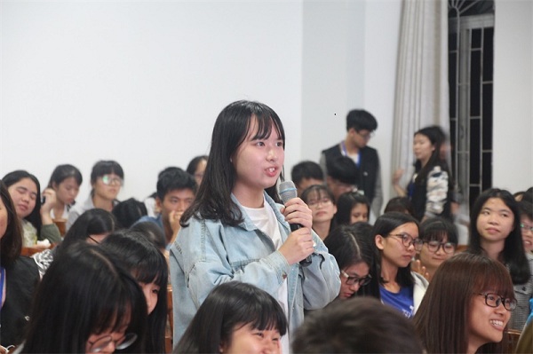 进入提问环节,同学们纷纷提出自己在大学里的遇到的情感、学习等问题,台上两位师兄都耐心的去解答同学们的问题。现场气氛十分活跃。