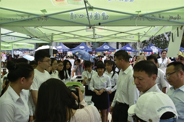 “非创新无以前进,非实用无以值得”。在模型区,湛江市科学协会主席肖斌、校党委宣传部部长谢应明等领导认真听取学生的作品介绍。湛江市科学协会主席肖斌讲到,城市园林和屋顶花园设计已被广泛提及,其技术也日臻成熟。他指出做屋顶花园还需要考虑本地环境条件,就如湛江台风天气,若在屋顶做园林则需要做进一步的考量。此外,针对有些同学做的校园角落园林设计的模型,校党委宣传部部长谢应明表示赞许。他认为,校园的园林景观设计可以大胆给一些园林专业的同学来做实践,有益于校园文化建设的大力开展。
