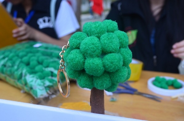 一张高大的古榕招牌标志,一排随风舞动的古榕图片,再加上美观入目的海报,展区现场显得格外生态自然。有奖问答和手工DIY制作区域也吸引了不少人儿。瞧!小朋友也拉着爸爸参与进来。虽然他们对古榕了解有限,但讲解员会耐心、详细地为他们科普高山榕知识。一旁的手工DIY参与者更是不亦乐乎。家长、小朋友、同学、老师纷纷参与其中。只见他们有模有样地学着,一棵棵生机勃勃的DIY古榕模型很快就呈现在眼前。一位同学很兴奋地说:“这个DIY很有创意,材料大多融入环保理念,古榕能在现场呈现立体模型,感觉十分贴近,而且可以随时带在身边。”