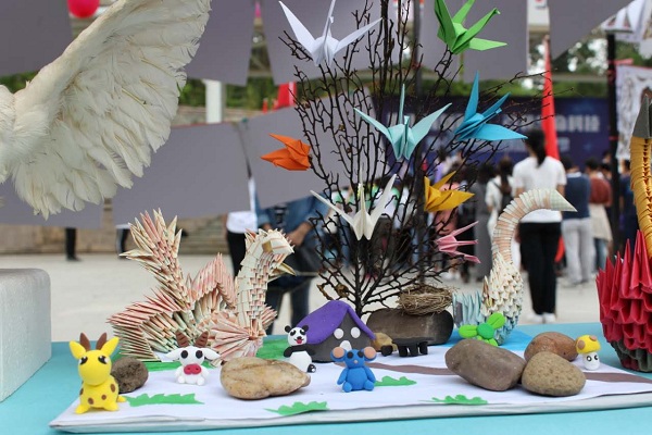 以向人们传递“鸟与自然,爱之护之”环保观念为目的展示区备受同学青睐。羽扬鸟社的成员通过对各种鸟类标本和彩图的讲解,向同学们宣传观鸟护鸟知识,同学们因此感受到了鸟类世界的五彩斑斓。展示区还有各种各样精美的DIY工艺品,如美丽的孔雀和花朵,风铃般的五彩千纸鹤,舒适鸟巢等,欣赏的同学无不赞叹工艺品的精巧。