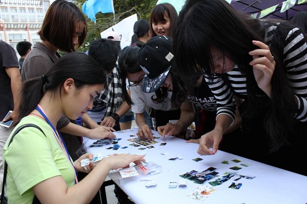 在充满欢乐的游戏区, “5秒记忆找小鸟”和拼图的游戏得到了同学们的踊跃参与。游戏气氛时而紧张时而轻松。不少同学还与呆萌鸟人“合体”拍照!笔者认为这是一张值得珍藏的照片,因为它是人头鸟身的搞怪自拍。